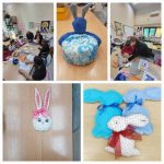 У сусрет су нам изашли и ученици текстилног смера, са својим наставницима, да чаролија буде потпуна. Да вез буде лакши, и да више научимо о меканим материјалима, допринели су другари малих репића, а ученичке креације испирисане њима, красе школски хол и чекају наредну ускршњу изложбу.