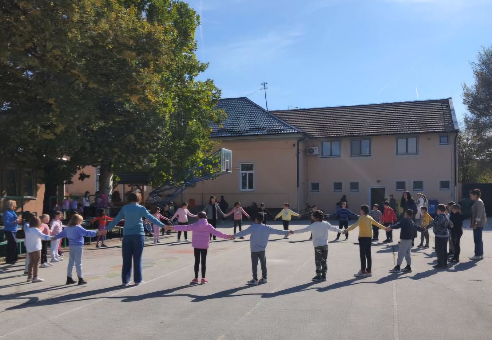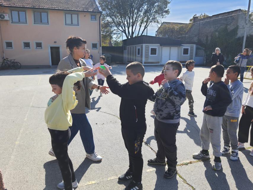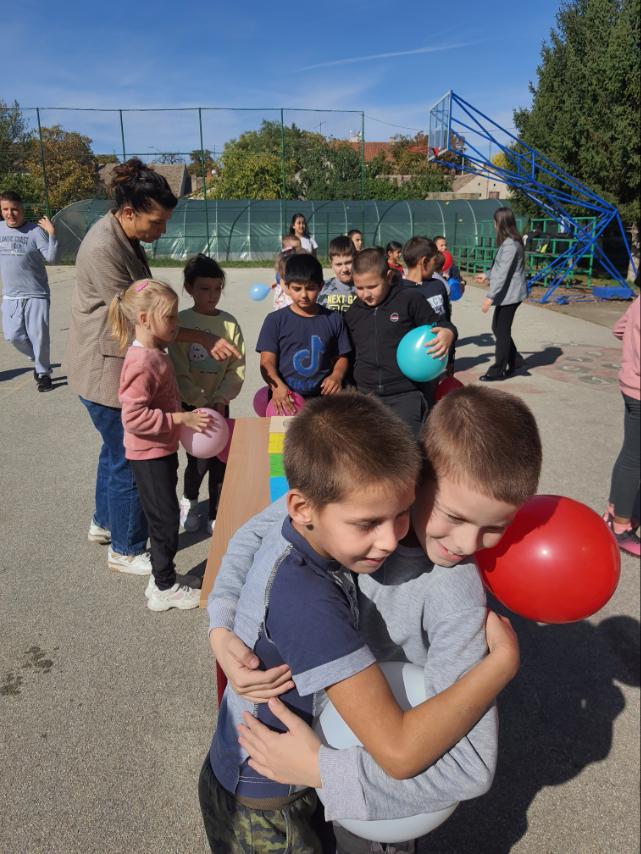Учитељица, Емилија Ђорђевић, нам је у госте довела своје одељење другог разреда. Након добродошлице и упознавања, ученици обе школе су уживали учествујући у кооперативним играма. У пријатној атмосфери једна игра је смењивана другом. Уз музику, лоптице и балоне у разним бојама, направили смо чаролију среће, заједништва, прихваћености и међусобне подршке.