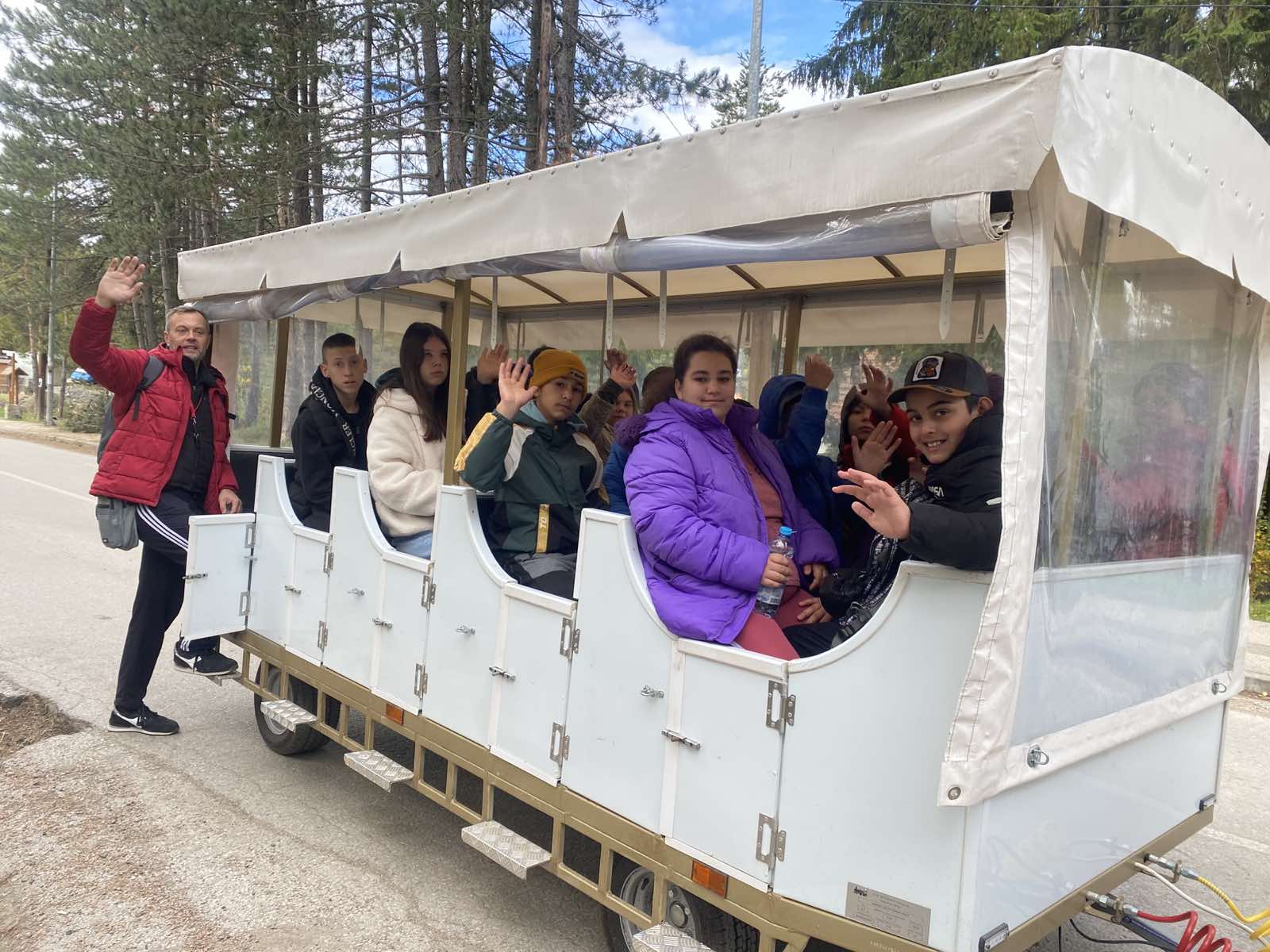 Још једна активност је посебно обрадовала наше ђаке – вожња возићем. Захуктали возић је, уз замишљени хук, пролазио пределима који су ђацима били познати из шетњи, али сада су их снено позивали да се врате на пролеће.