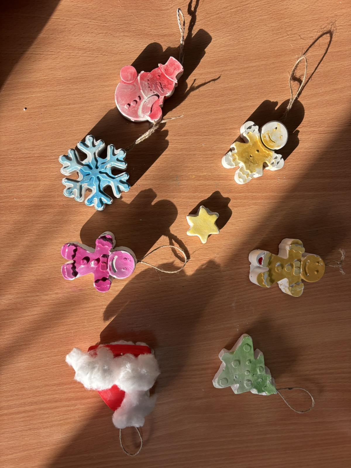 Правили смо новогодишње украсе од гипса, бојили их и украшавали.