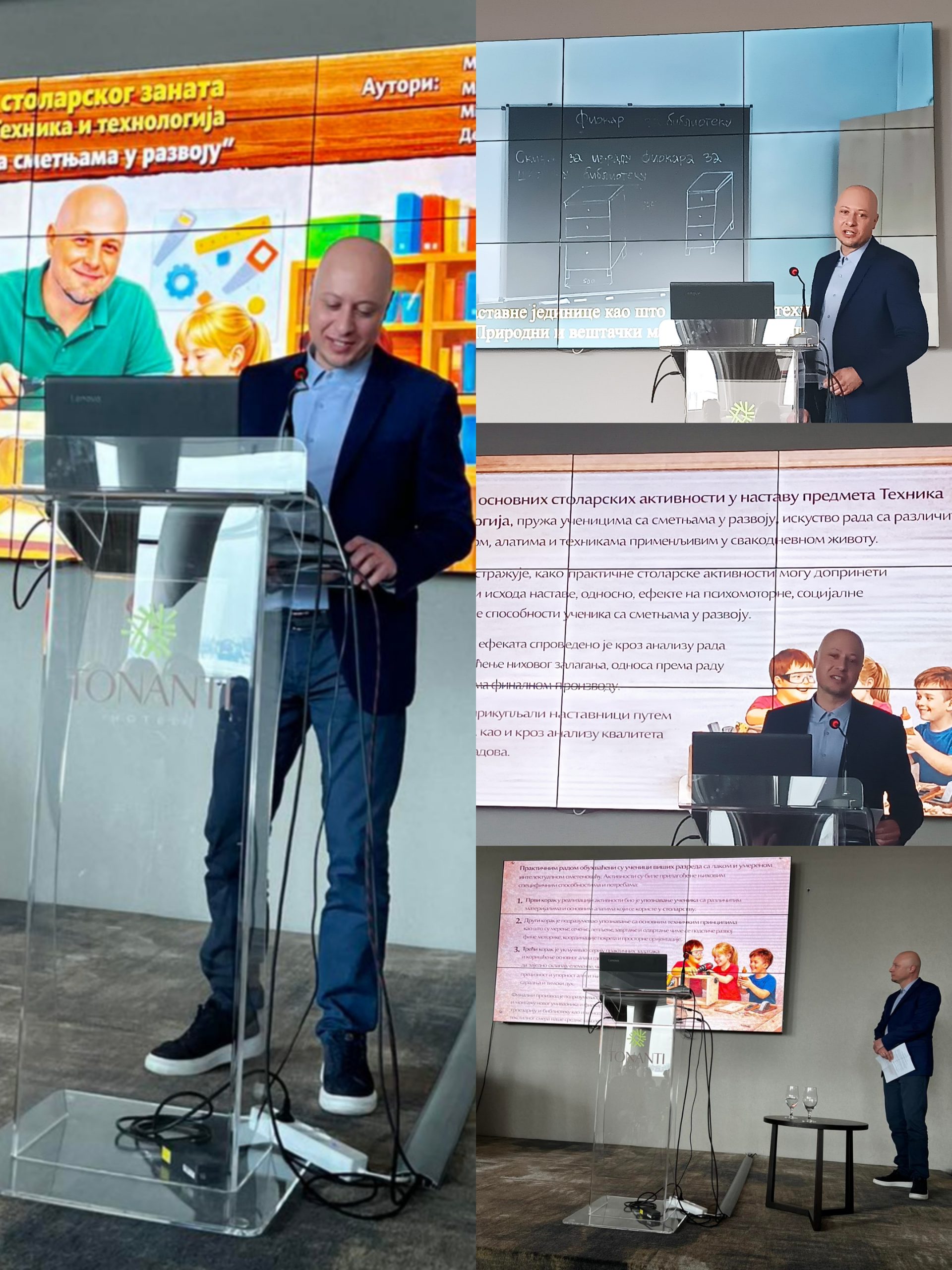 1. Примену столарског заната у предмету Техника и технологија. Колеге: Марко Лукић, Марија Јеремић, Михаљ Келемен и Десанка Мунић приказали су методичан приступ у усвајању овог заната, као и начин како децу мотивисати кроз свакодневно практично коришћење направљених комода и полица.