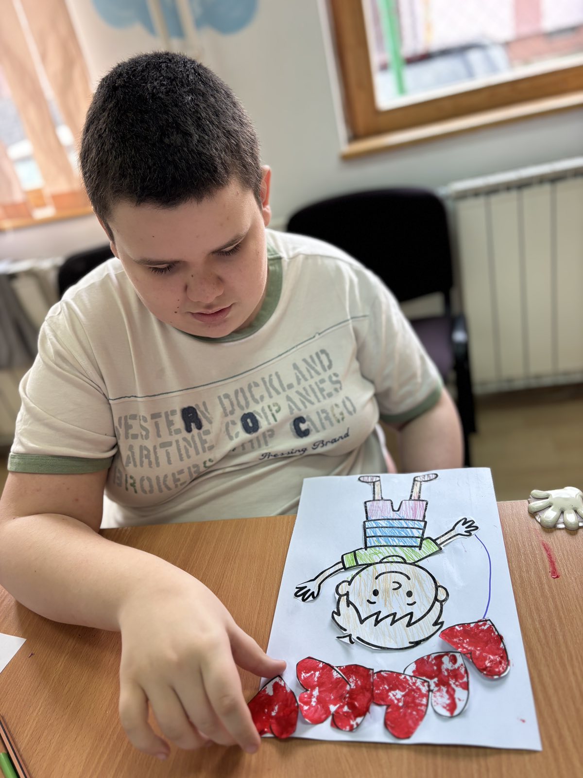 Ученици су различитим ликовним техникама правили радове на тему радионице. Уживали су у радионици, негујући другарство и тимски рад.