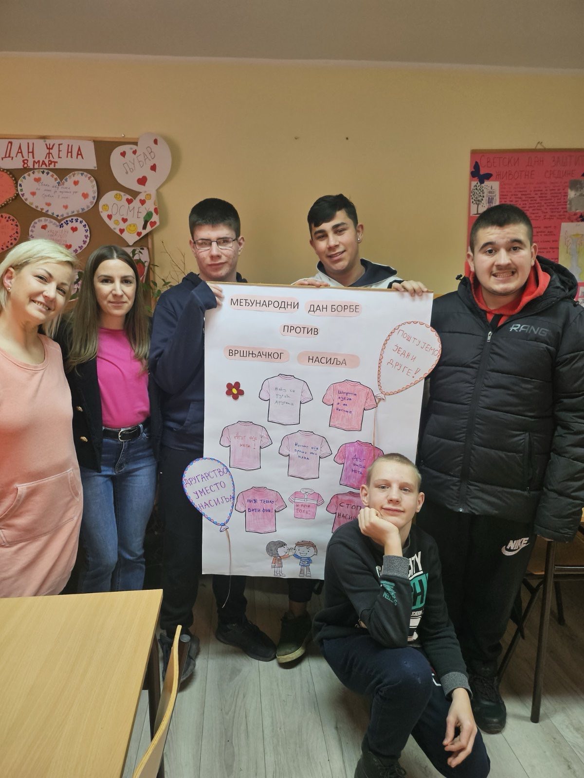 Међународни дан борбе против вршњачког насиља није ни ове године у нашој школи прошао незапажено. Ученици и наставници су у ведрој и позитивној атмосфери организовали уличну акцију са циљем промовисања толеранције, поштовања и ненасилне комуникације. Сунчани, 25. фебруар, испунио је парк у Панчеву посетиоцима којима су ученици делили поклоне: колачиће, цвеће, балоне и едукативне флајере наше школе. На тај начин послали смо снажну поруку заједништва, пријатељства и подршку свима који се залажу за одрастање без насиља. Велики број људи и деце, са осмехом и одобравањем, саслушао је наше ученике, прихватио поклоне и препознао нашу поруку. Розе боја, као симбол овог дана, оличава љубав и нежност, емпатију, пријатељство, наду и зато су наши поклони розе обојени.