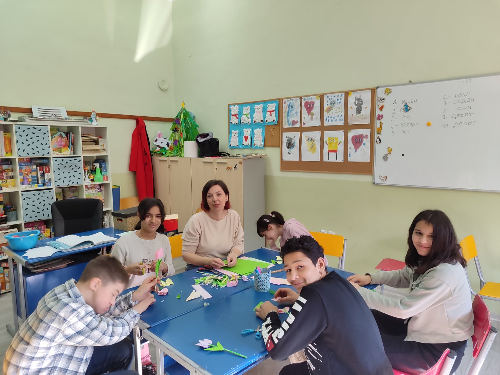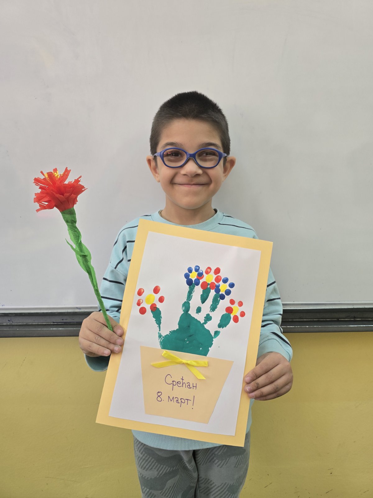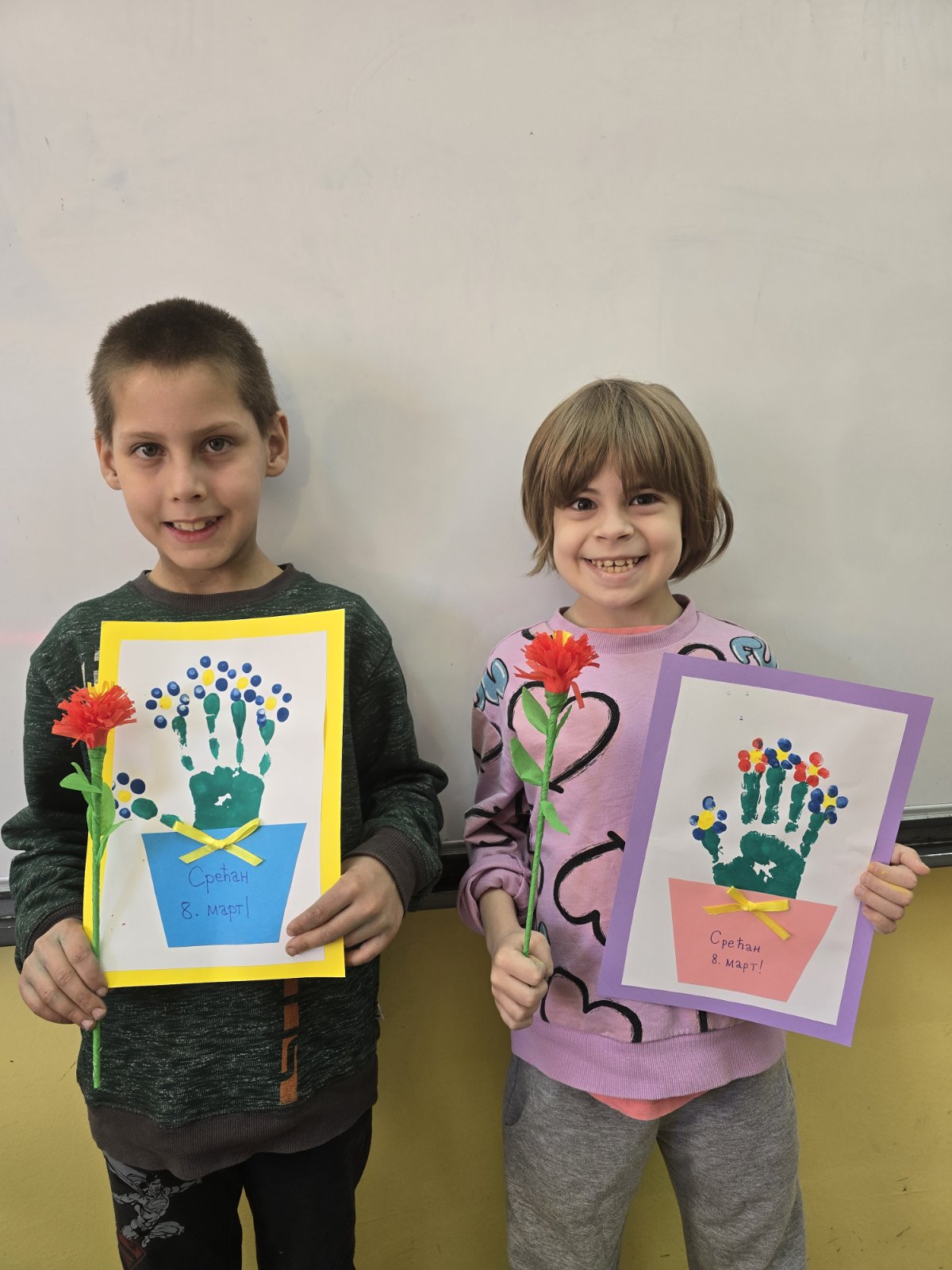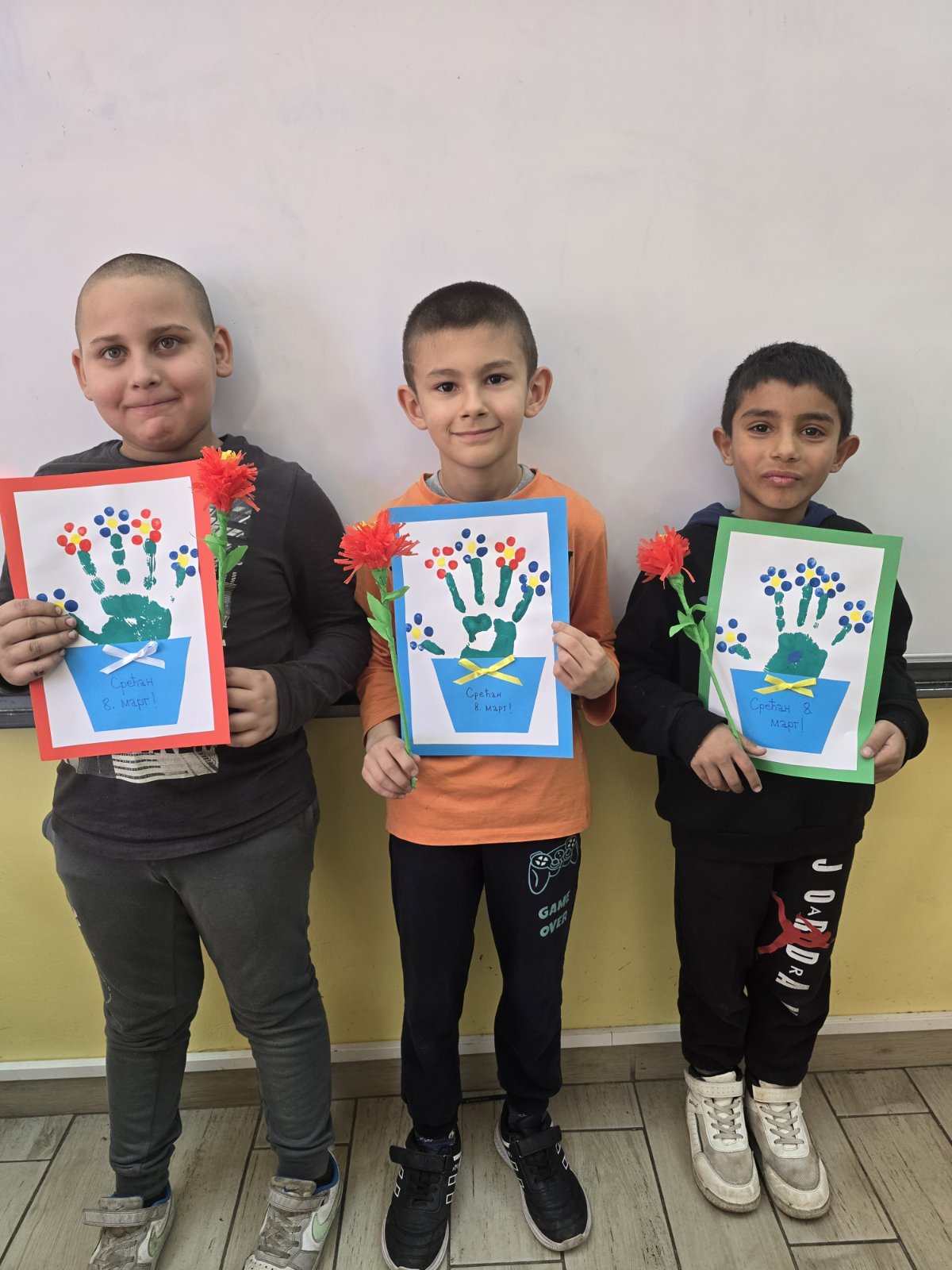 Чланице Тима за здравствену и социјалну заштиту су одржале неколико радионица на којима су ученици израђивали честитке и поклоне за драге жене (маме, баке, тетке, хранитељице, учитељице, наставнице).