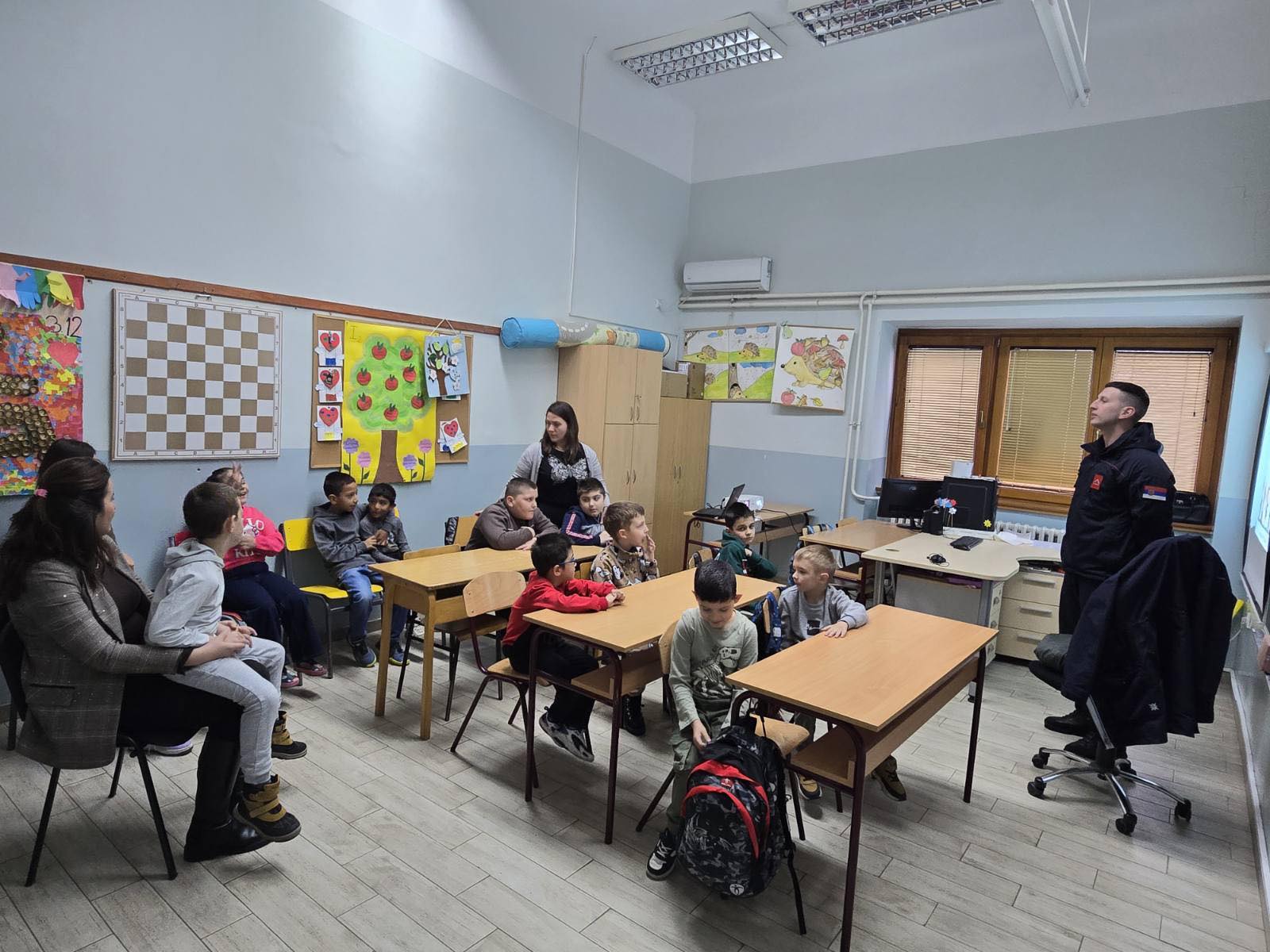 Ученике првог и седмог разреда посетили су и припадници Сектора за ванредне ситуације- ватрогасци, који су говорили о заштити од пожара, правилном реаговању у ванредним ситуацијама и значају брзог и присебног поступања у случају опасности. Нагласили су нашим ђацима важне бројеве телефона и на које начине могу пријавити пожар. Кроз занимљиве приче и практичне савете ученици су научили како да препознају ризичне ситуације и како да заштите себе и друге. Ученицима нижих разреда посебно је била занимљива ватрогасна опрема, коју су са великим одушевљењем разгледали и пробали, што је употпунило дружење са представницима ватрогасаца.