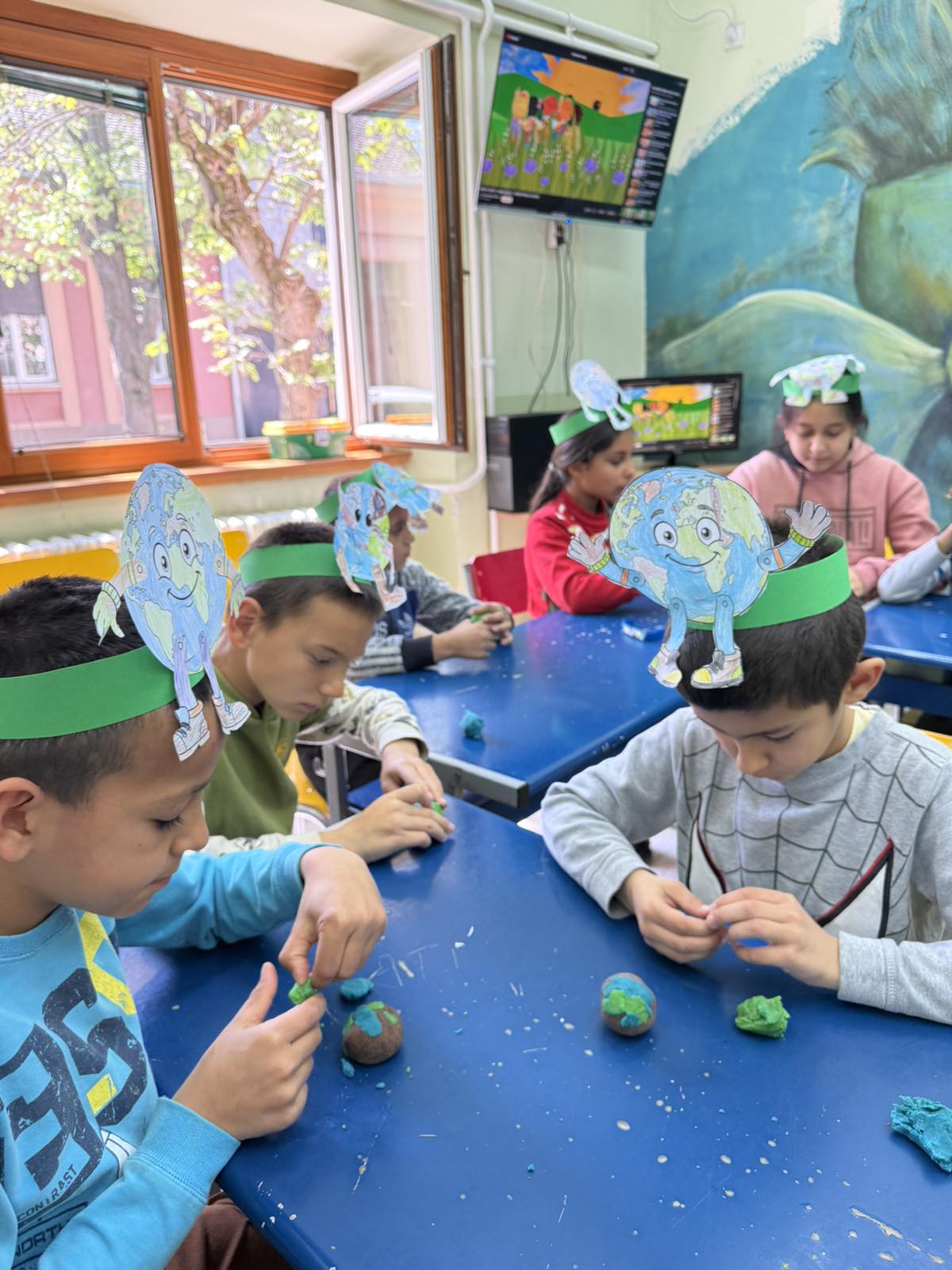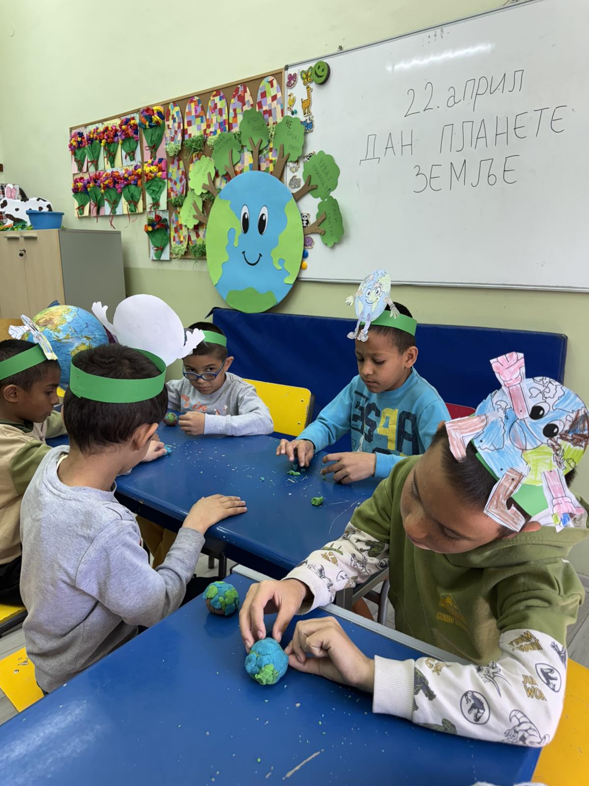 У завршној фази радионице сваки ученик је од еколошког пластелина направио своју планету Земљу, коју су обукли копненим и воденим површинама.