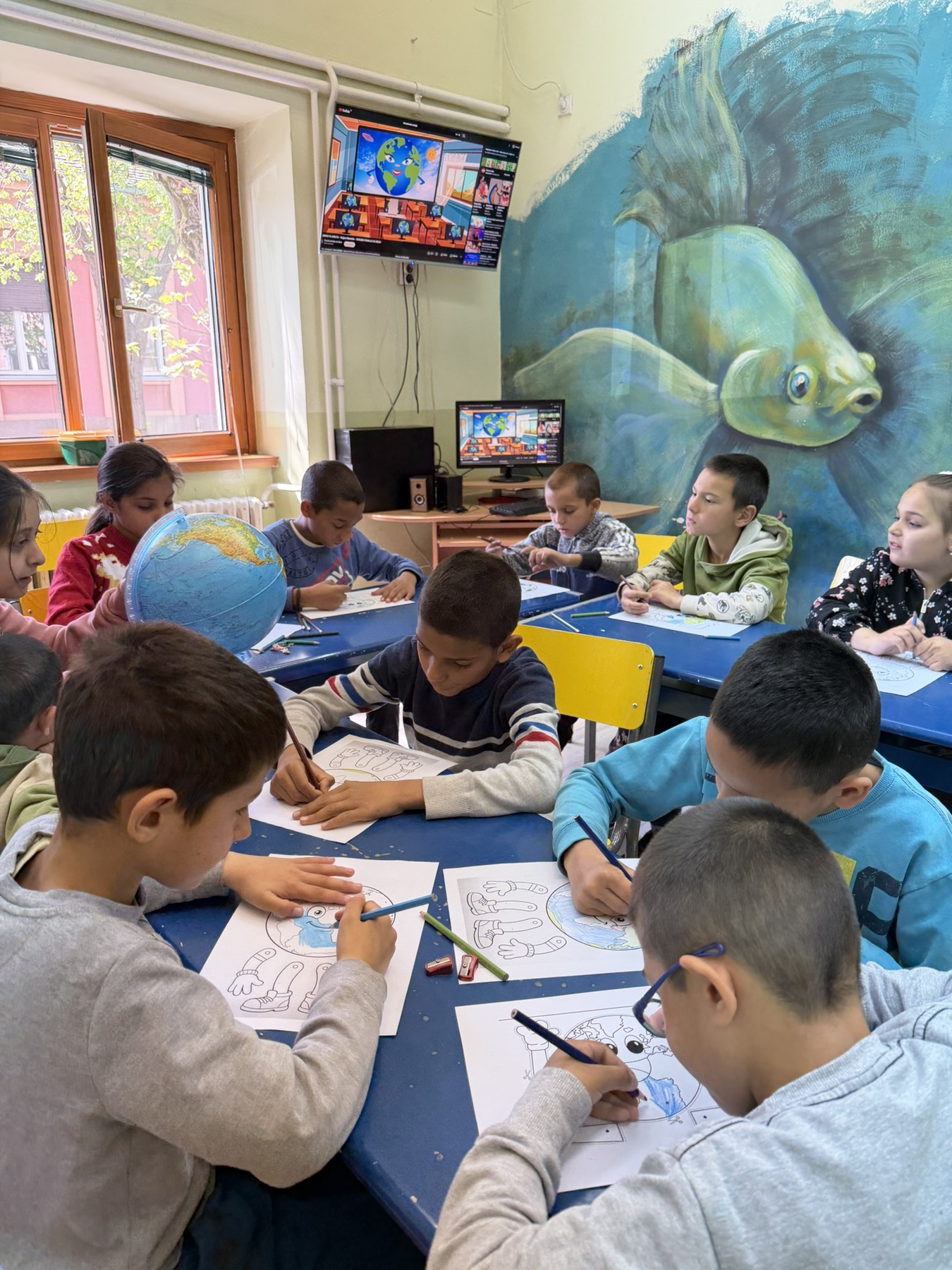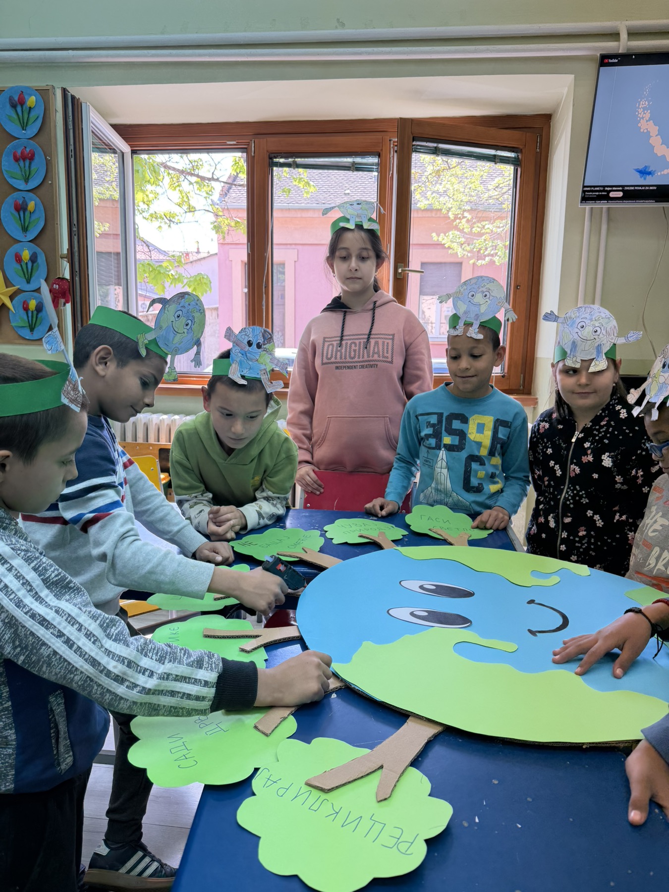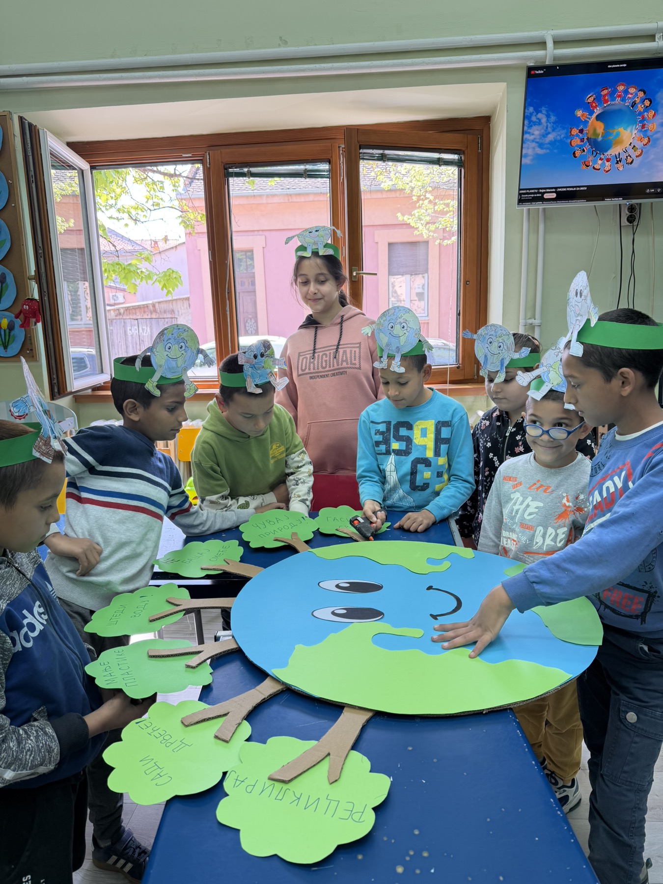 Прво смо одгледали едукативни филм о начину на који можемо да сачувамо нашу планету, а затим смо о томе разговарали. Ученици су износили своја мишљења и предлоге. Након дискусије, приступили смо бојењу и украшавању круница са илустрацијом планете Земље.
